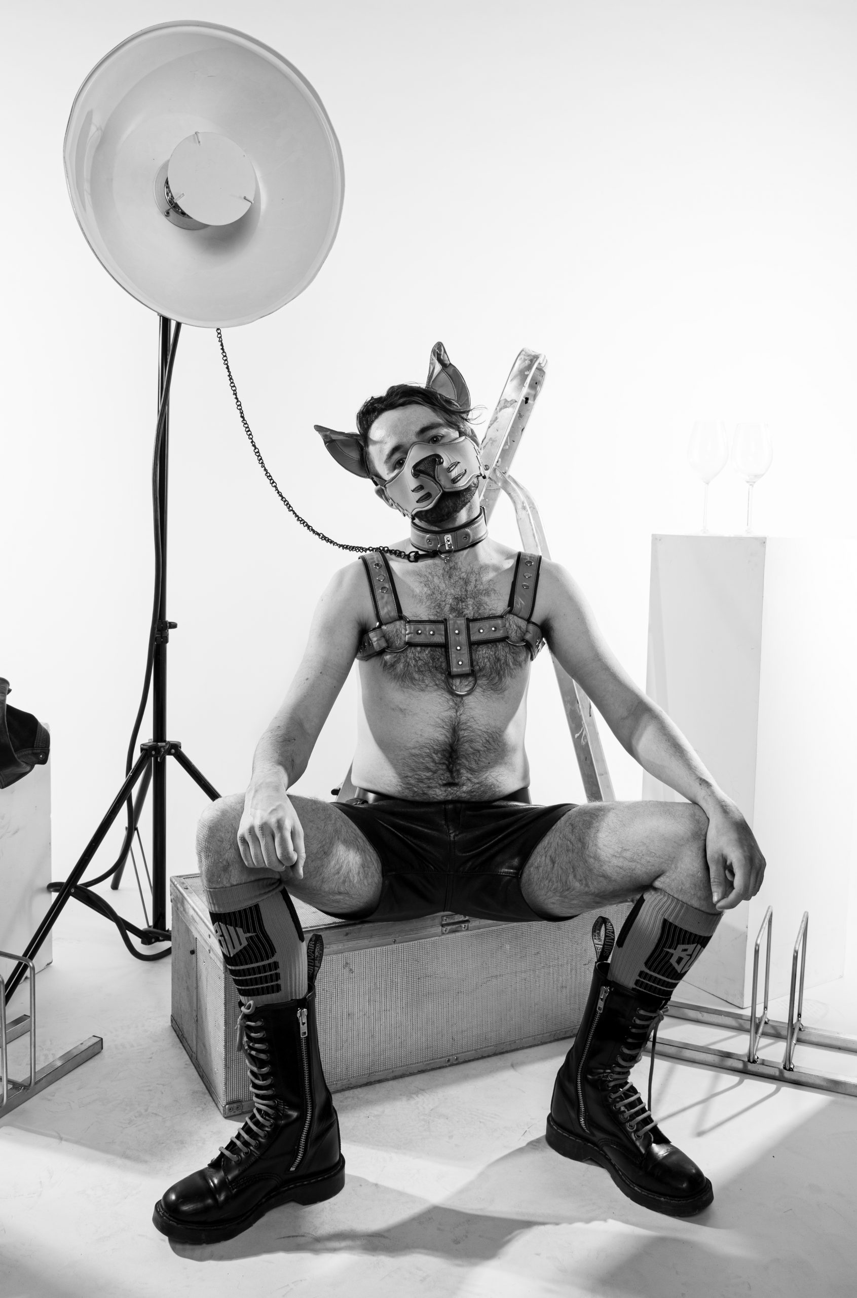 By staging these subjects within a high-contrast, studio-based mise-en-scène, the series draws attention to the theatricality of identity — not as artifice, but as deliberate performance. The stark monochrome palette enhances the sculptural presence of leather, metal, and skin, while gesturing toward the historic visual vocabulary of queer resistance: cruising, codes, concealment, and revelation.