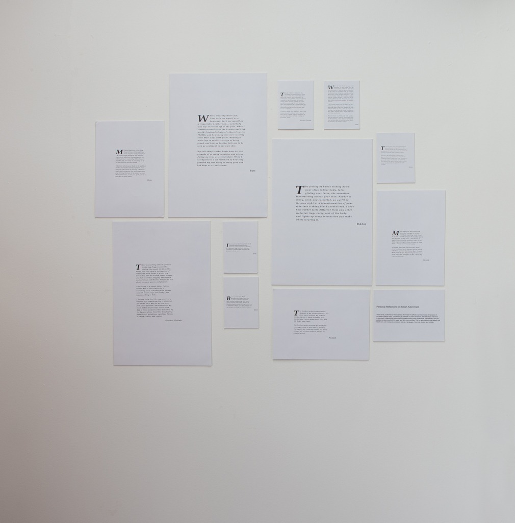 The images are accompanied by short personal texts in which each participant reflects on the emotional, erotic, or symbolic resonance of a single item they wear. These statements interrupt the often-objectifying lens through which kink is publicly viewed, centring lived experience, intimacy, and relational meaning. In doing so, the work challenges the aesthetic detachment of classical portraiture, replacing it with a methodology rooted in co-authorship and embodied presence.